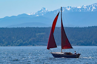 Seriously? Can you imagine a full keel cruising design in a field of hard core racers? Neither can I. But there she was, out spreading her wings during the annual Shipwrights' Regatta, in Port Townsend Bay.