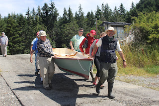 Mistral, the big live-aboard/cruising dory that inspired the moniker on the header? She is still around, though an apparent permanent resident of the backyard boatyard. We hauled her from the water a couple years ago to make the journey from the Oregon coast to my new domicile in Port Townsend. Why didn't I sail her here on her own bottom? You ask a good question. The best answer I can offer, is, a trip northbound on the Pacific coast of the US is strenuous, since a vessel must climb uphill, against prevailing weather and tide. I've done it a few times - and failed, too. It's not a voyage to be taken lightly.